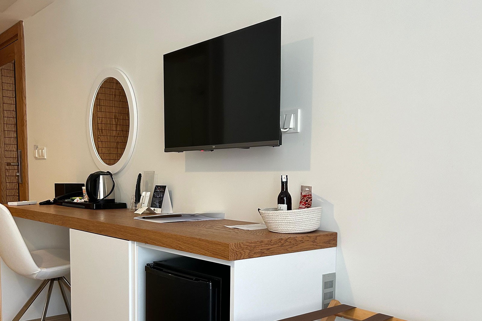 Yeni otel binamızda sizleri ağırlamaktan mutluluk duyuyoruz! Jr. Exclusive Odamız, modern tasarımı ve göz alıcı deniz manzarasıyla konforunuzu en üst seviyeye taşır.